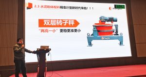 河南豐博技術部經理劉文飛先生與嘉賓們分享了《雙層轉子秤開啟水泥精準配料計量新時代》的精彩報告。